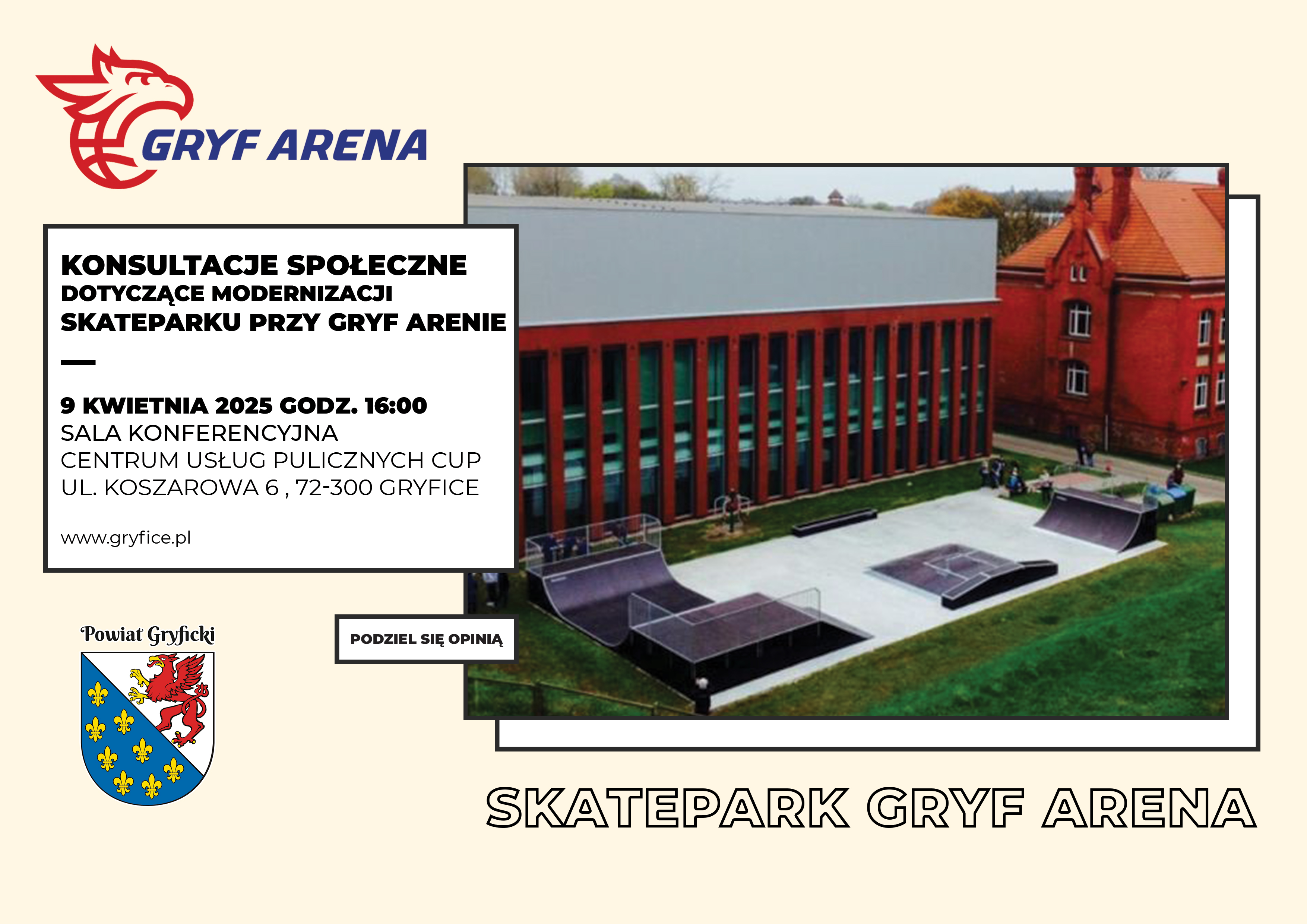 Ogłoszenie - Konsultacje społeczne dotyczące budowy skateparku przy Gryf Arenie